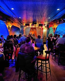 Rates begin at $50/hr for smaller rooms and $175 for the largest room. Enjoy food like yuzu chili edamame, potstickers, and wings, and get a little liquid courage with signature cocktails, beer/wine, and soju. Catering menus and open bar packages are available for larger groups.