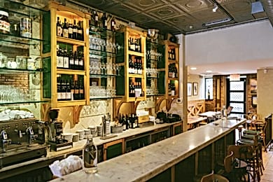 Before there were limewashed walls and industrial-chic decorated wine bars owned by ex-indie rockers, there was The Ten Bells. Having opened in 2008, they’ve remained quietly steadfast in the growing bustle of the Lower East Side, showcasing a long list of unique and natural wines from Europe and beyond. This dimly lit haunt has classic tin ceilings, a matching bar, dark mahogany wood panels and fixtures, and some exposed brick for good measure.