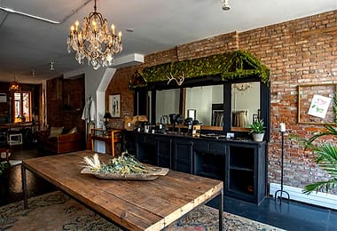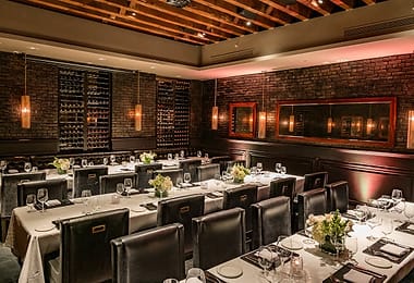 Based in a former synagogue just four blocks from the Barclays Center, Deity Events incorporates hardwood flooring, brick walls, and neon signage for an industrial feel. The venue’s in-house catering service offers adult and teen-oriented menus, including parmesan-stuffed cremini mushrooms, a 24-hour short rib, and classic chicken tenders that are a surefire hit with younger bar/bat mitzvah partygoers.