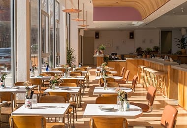 There are two Wes Anderson-inspired private dining spaces: The Green Room and The Skylight Room can be booked individually or combined via a private bar for up to 30 guests. There's a projector, audio set-up, and retro games available for entertaining the kids while the adults chat.