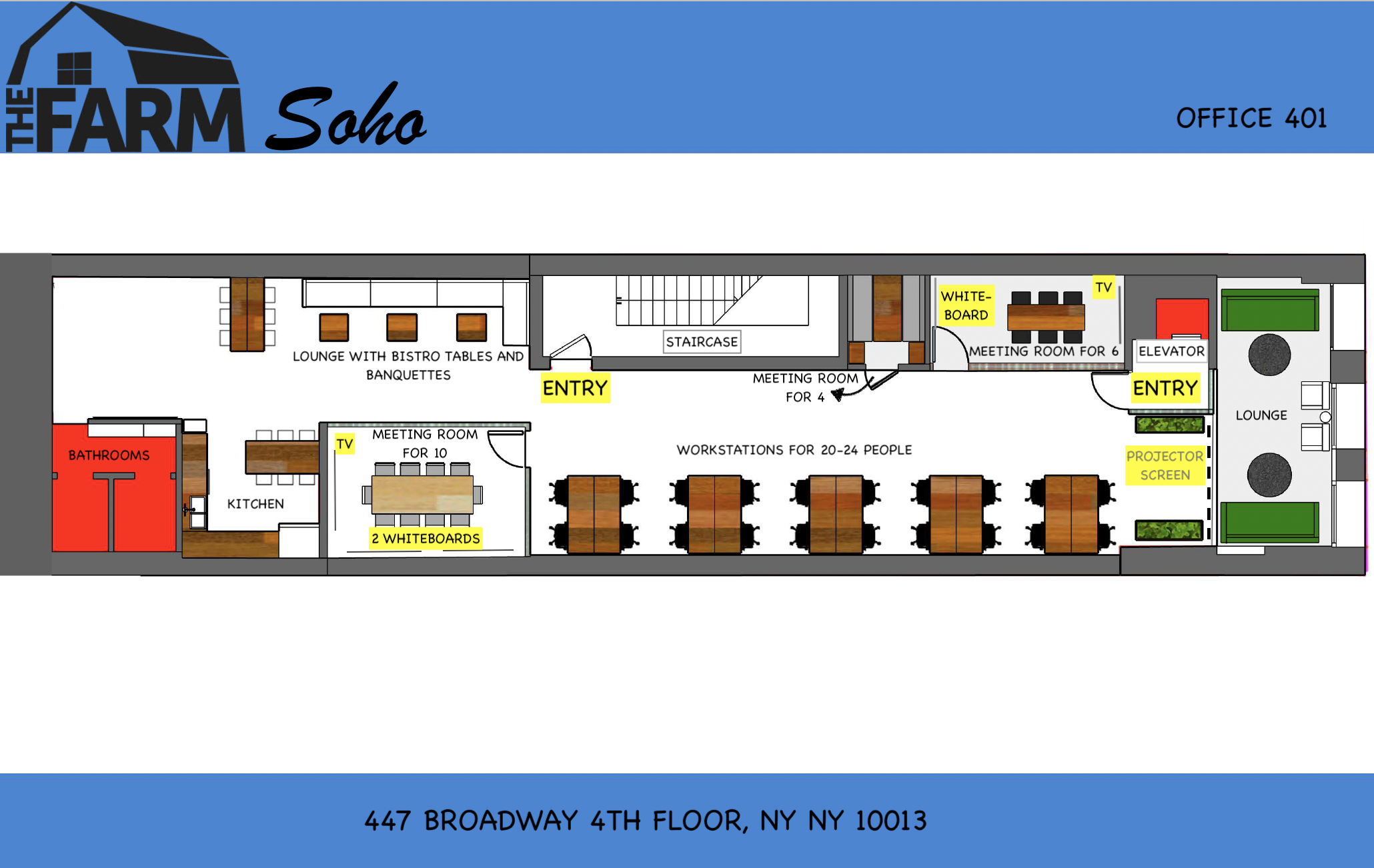 Make your next event unforgettable at 447 Broadway, New York — a stylish and modern venue that blends sophistication with comfort. Featuring a sleek kitchenette, lounge area, private restrooms, and three breakout rooms, the space adapts seamlessly to intimate gatherings, social or creative events, pop-ups, networking mixers, workshops, or brand activations. Enjoy access to dedicated lounge areas perfect for informal catch-ups or breaks, along with a kitchen and bathrooms for added convenience. With thoughtful design and high-speed WiFi, this venue sets the tone for a memorable experience in the heart of downtown Manhattan. AMENITIES • Fiber-Optic Internet/ WiFi • Meeting OWL Video Conference offering 360-degree camera, with built-in microphone and speaker (upon request) • Projector w/ Screen • TV, Apple TV • Whiteboards • Coffee, Tea, Espresso Drinks, and Filtered Water • Kitchen • Community Manager onsite • Outside Catering Is Allowed (cleaning fee may apply) • Catering Options Available • Minutes away from all the major subway lines (A, C, E, B, D, F, M, N, Q, R, W, 6, 1)