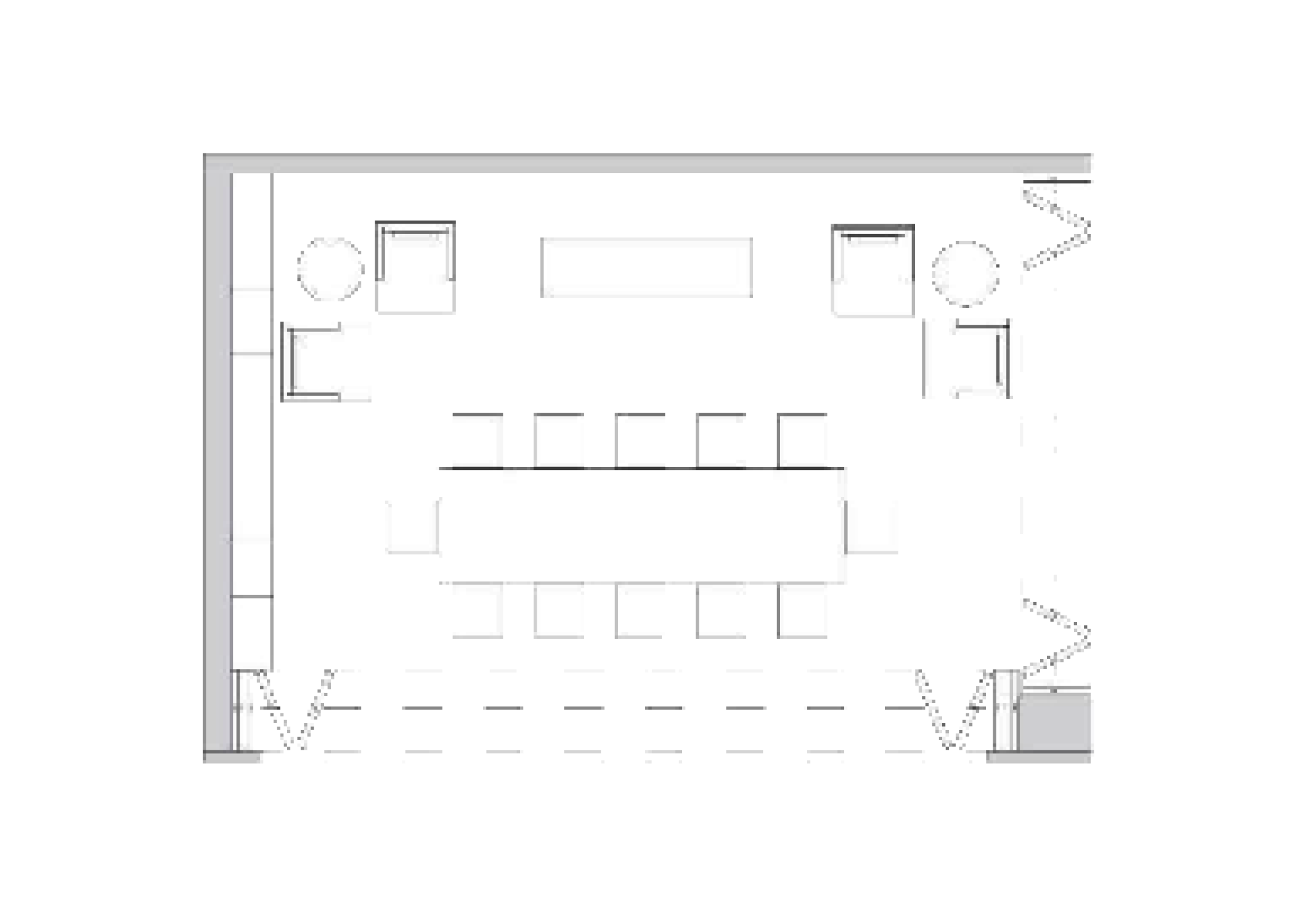 The Library is a modern and contemporary space showcased in the heart of Arlo Soho's main lobby level. Enclosed for privacy with retractable walls and doors. The room is 400 square features a flat-screen TV, HDMI connection for projection, boardroom table equipped with USB and power outlets to charge any gathering. The room can be utilized as a pop up shop, traditional meeting space, team bonding, bridal suite and much more.