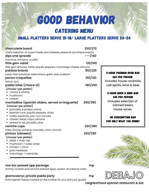A bar occupying the rooftop of MADE Hotel in NoMad, Good Behavior is our stunning 18th floor lounge with panoramic views of New York City. Situated high above 29th Street and Broadway lies this tranquil skyline experience. Good Behavior offers seasonal cocktails, beers and wine in a lush tropical setting. With both indoor and outdoor seating, Good Behavior is perfect for groups large or small, private or semi private events seven days a week through rain or shine.